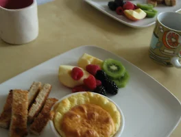 토스트와 과일 등을 곁들여 예쁘게 담아내면 보기도 좋고 맛도 좋고 영양의 균형도!!
